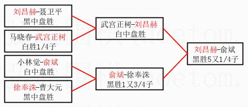 2.上半区半决赛刘昌赫获胜, 比分:刘昌赫 1:0 武宫正树。棋局: