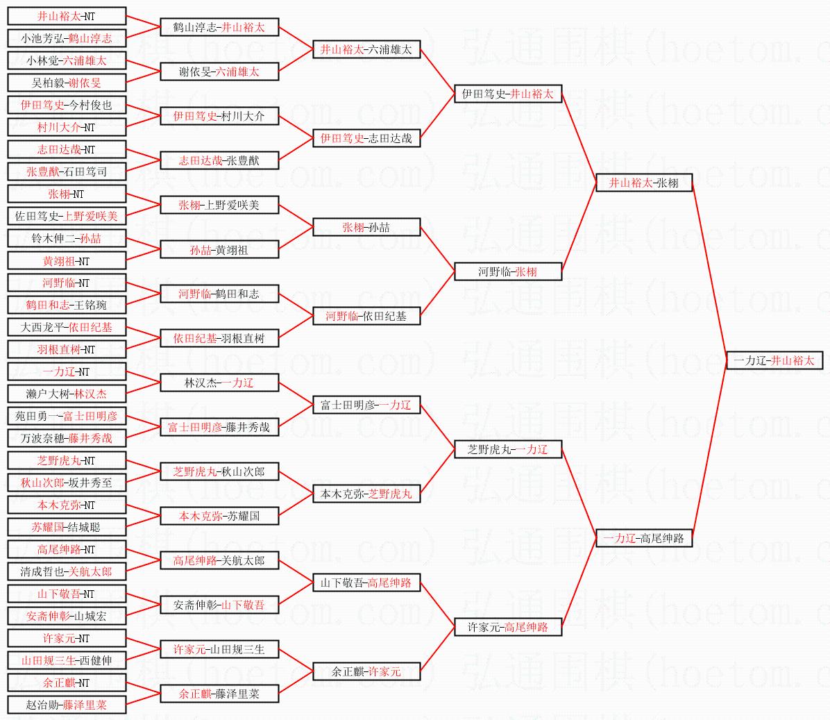 1.井山裕太获得冠军,一力辽获得亚军。决赛比分:井山裕太1:0一力辽。棋局: