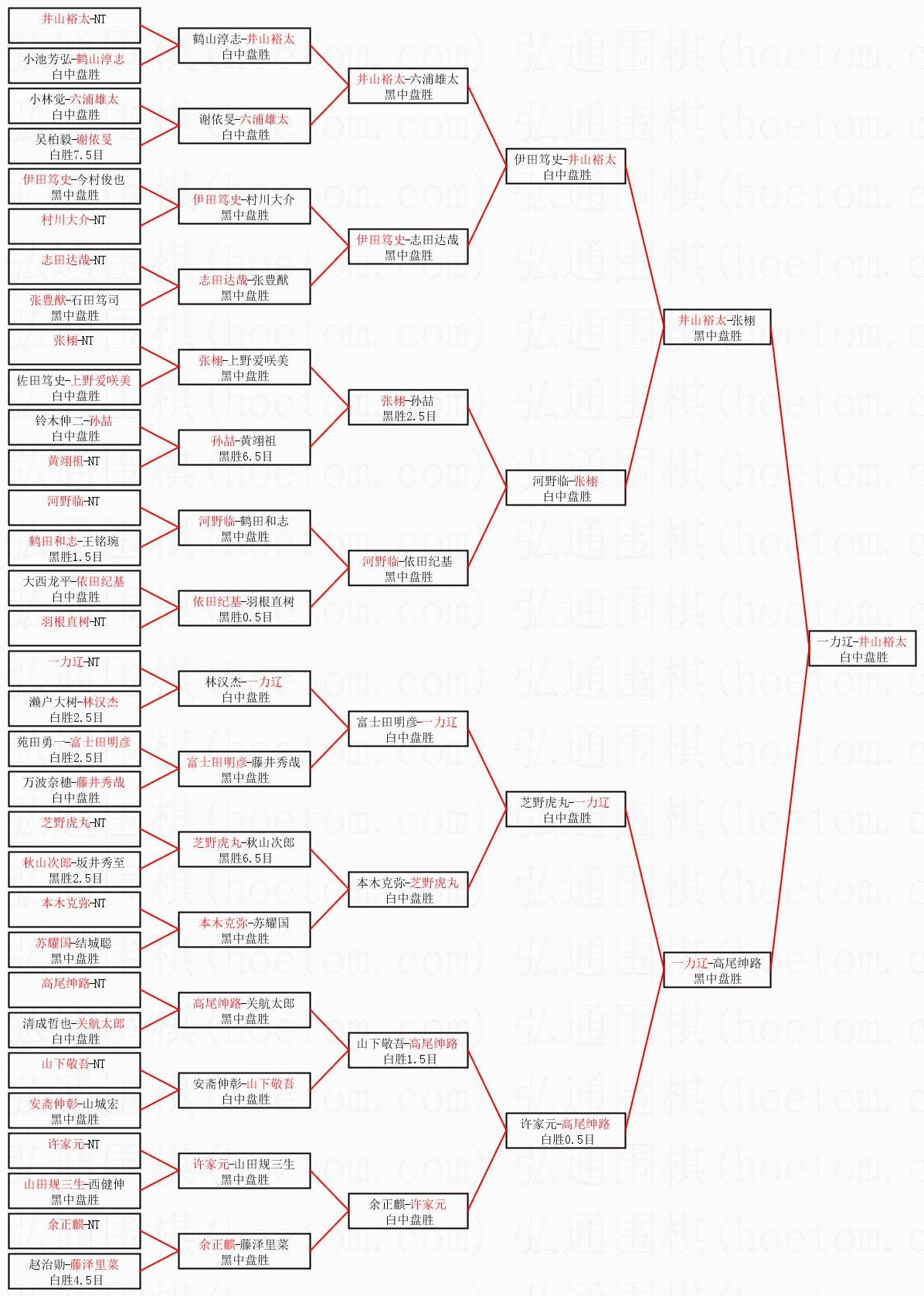 1.井山裕太获得冠军,一力辽获得亚军。决赛比分:井山裕太1:0一力辽。棋局: