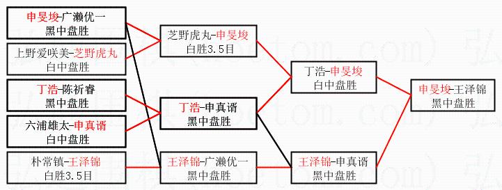 | 4.丁浩和申真谞分获三、四名。棋局: | ||