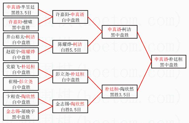 2.上半区半决赛申真谞获胜, 比分:申真谞 1:0 柯洁。棋局: