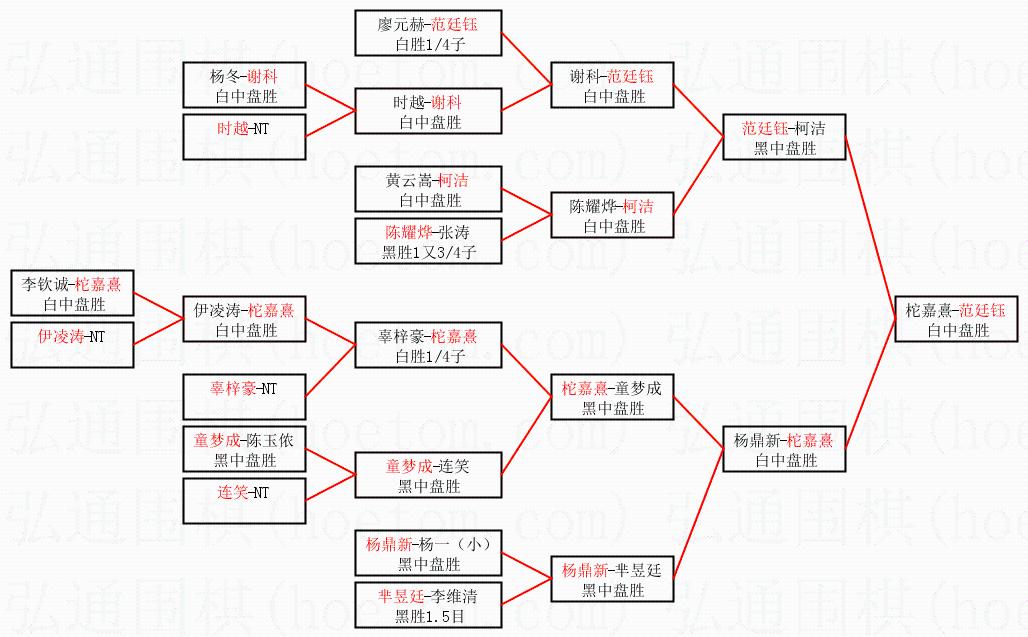 2.上半区半决赛范廷钰获胜, 比分:范廷钰 1:0 柯洁。棋局: