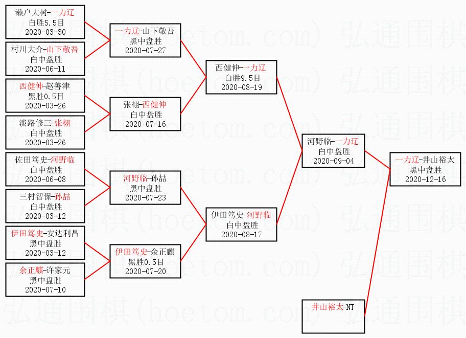 1.一力辽获得冠军,井山裕太获得亚军。决赛比分:一力辽3:2井山裕太。棋局:
