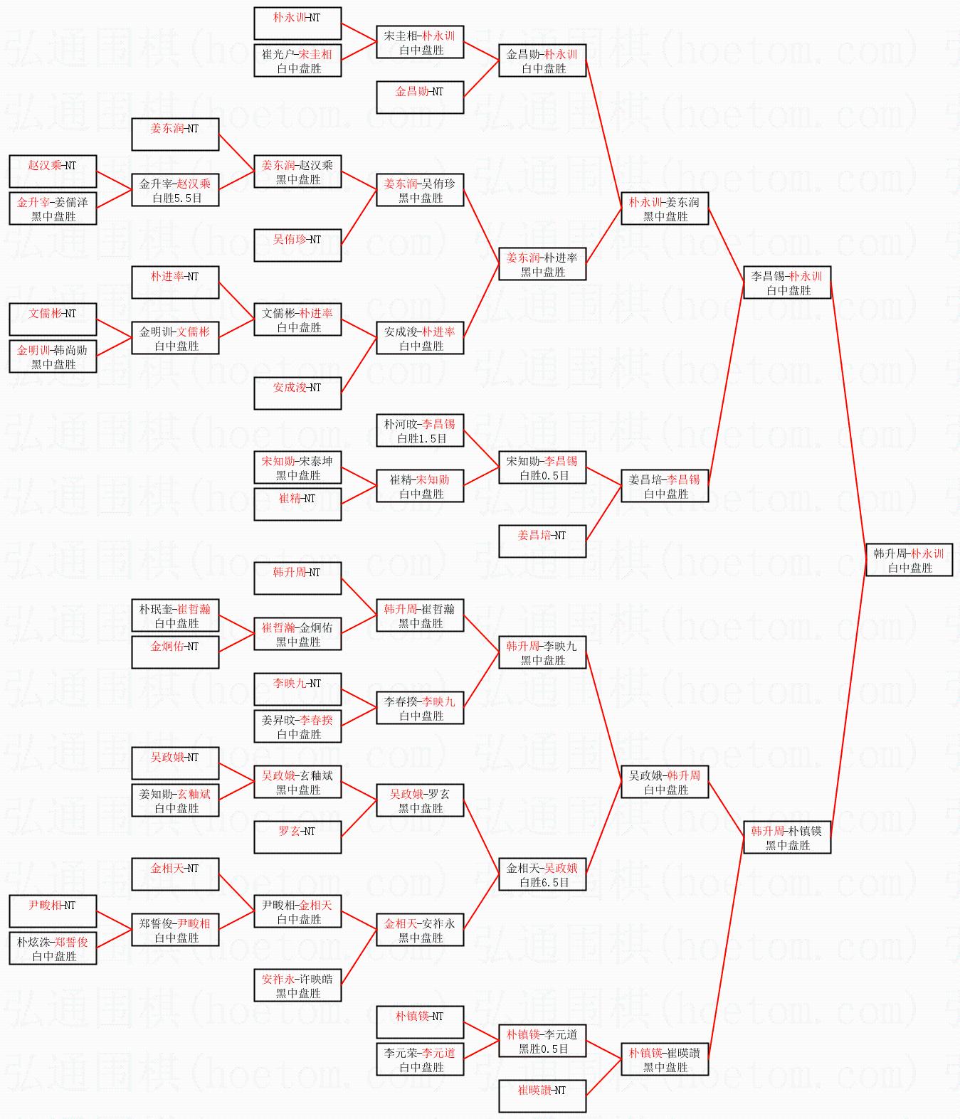 1.朴永训获得冠军,韩升周获得亚军。决赛比分:朴永训1:0韩升周。棋局:
