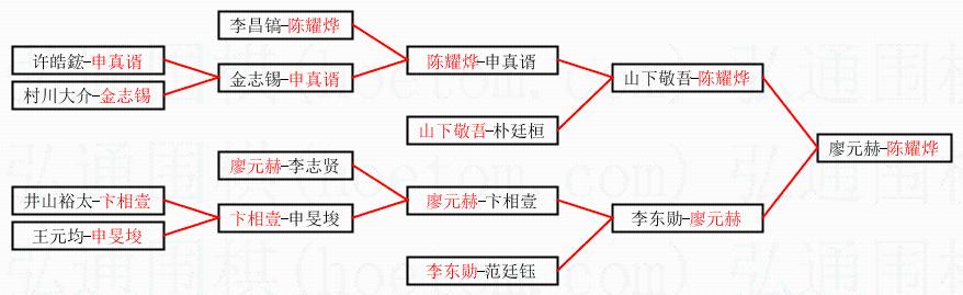 3.下半区半决赛廖元赫获胜,比分:廖元赫1:0李东勋。棋局: