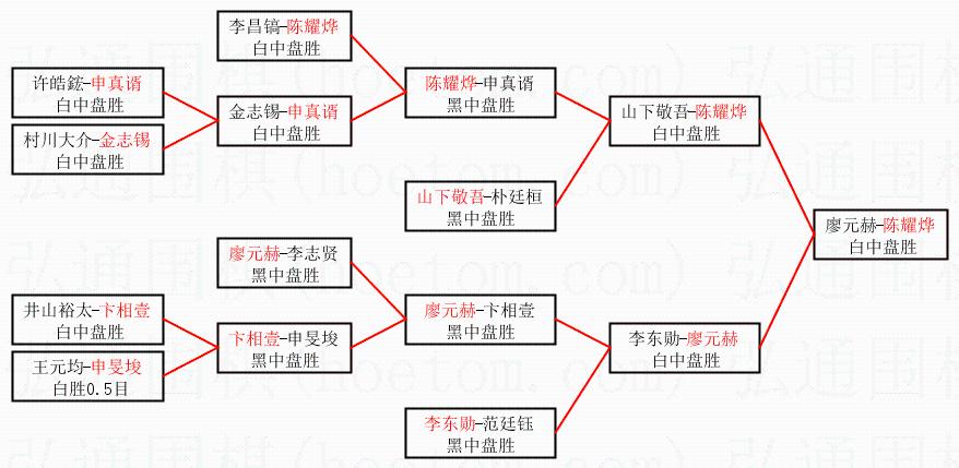 3.下半区半决赛廖元赫获胜,比分:廖元赫1:0李东勋。棋局: