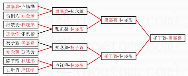 | 1.黑嘉嘉获得冠军,杨子萱获得亚军。决赛比分:黑嘉嘉1:0杨子萱。棋局: | ||