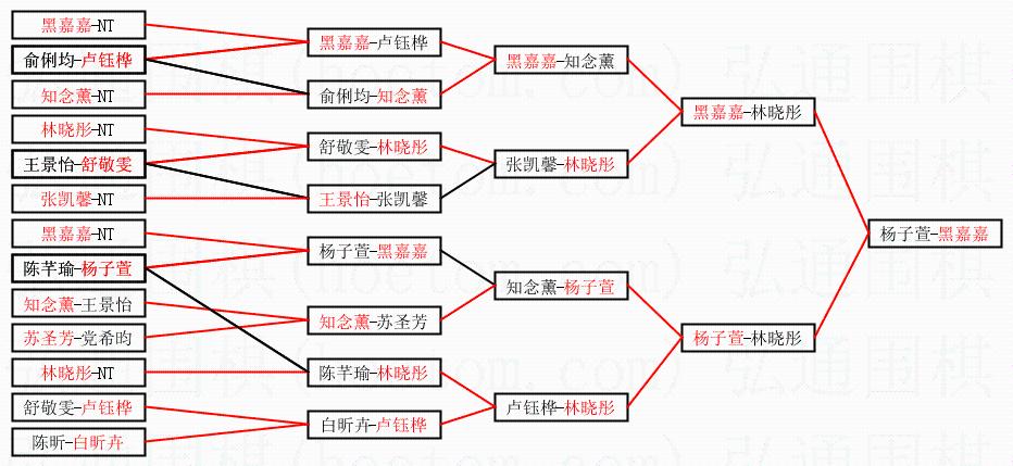 | 1.黑嘉嘉获得冠军,杨子萱获得亚军。决赛比分:黑嘉嘉1:0杨子萱。棋局: | ||