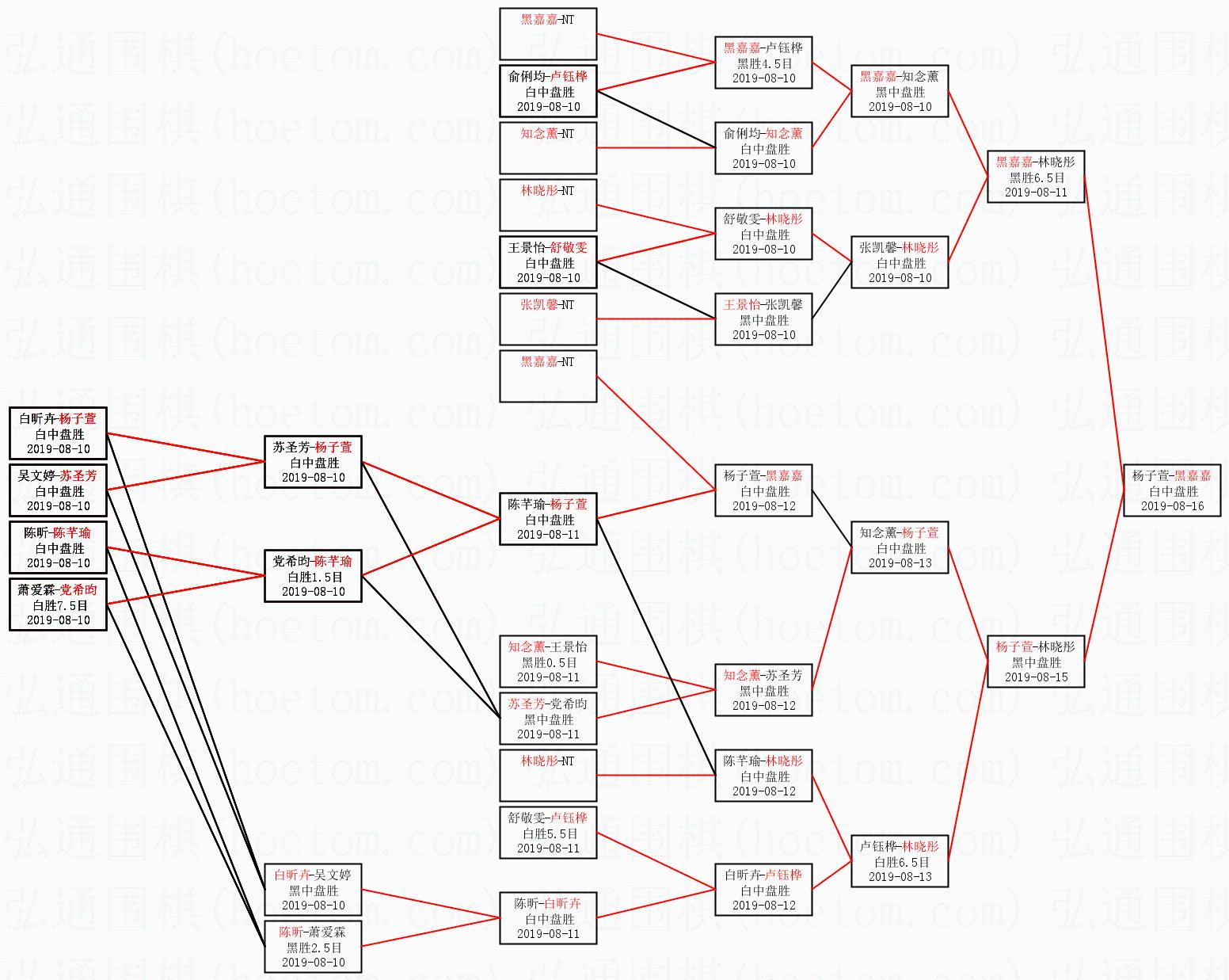 | 2019-08-15 杨子萱-林晓彤 黑中盘胜 | ||