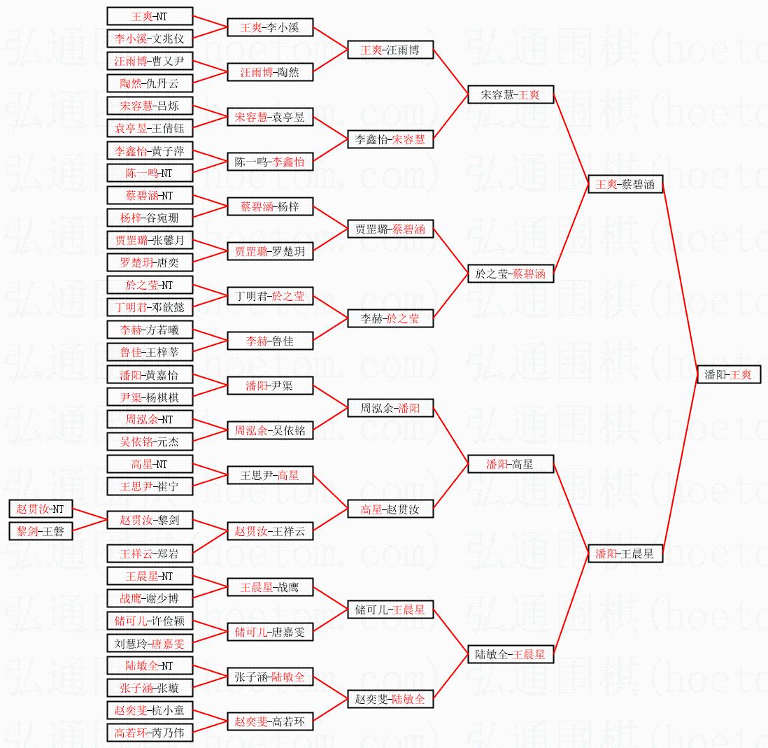 1.王爽获得冠军,潘阳获得亚军。决赛比分:王爽2:0潘阳。棋局: