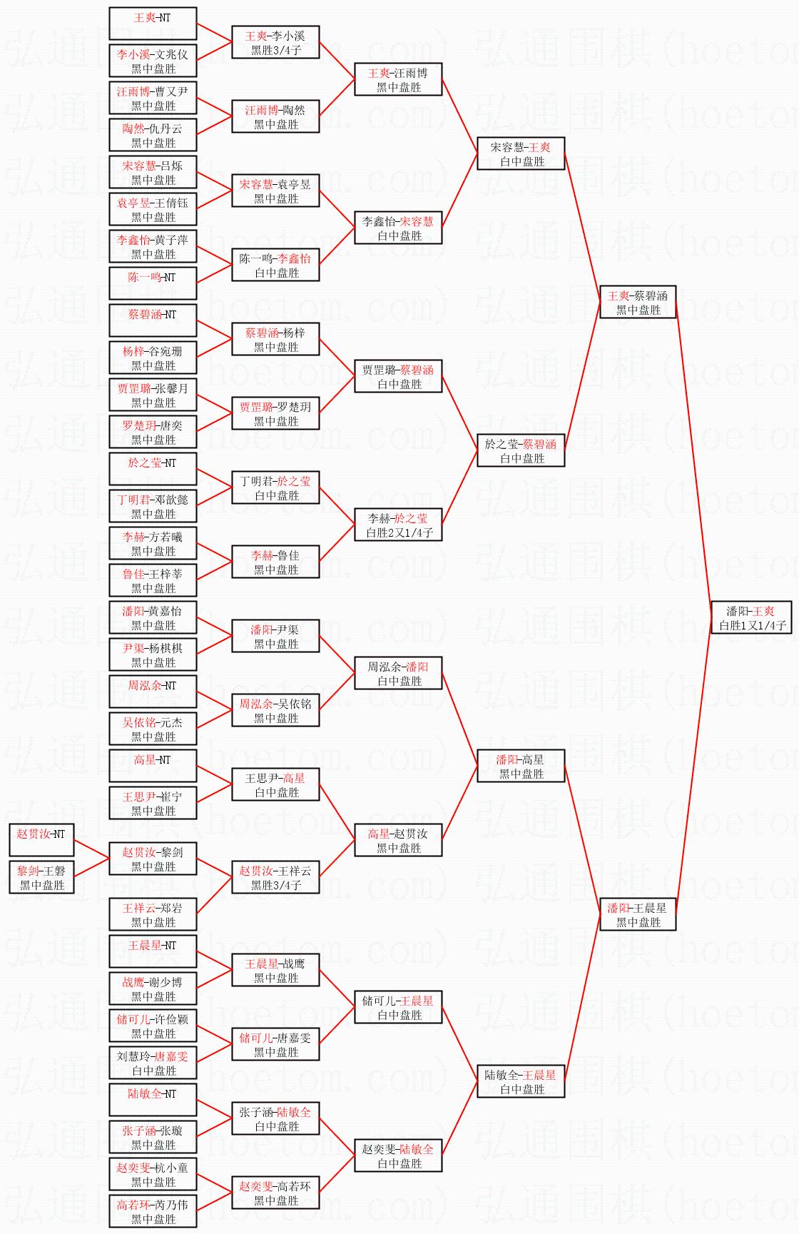 2.上半区半决赛王爽获胜, 比分:王爽 1:0 蔡碧涵。棋局: