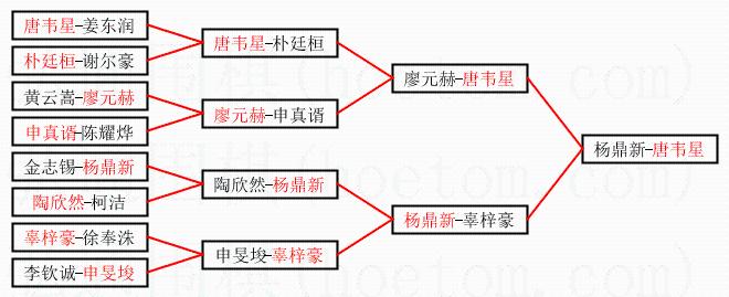 | 1.唐韦星获得冠军,杨鼎新获得亚军。决赛比分:唐韦星2:1杨鼎新。棋局: | ||