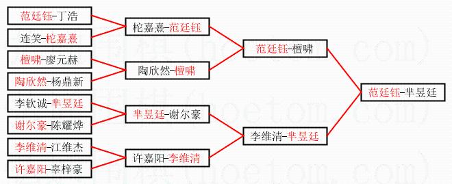 1.范廷钰获得冠军,芈昱廷获得亚军。决赛比分:范廷钰1:0芈昱廷。棋局: