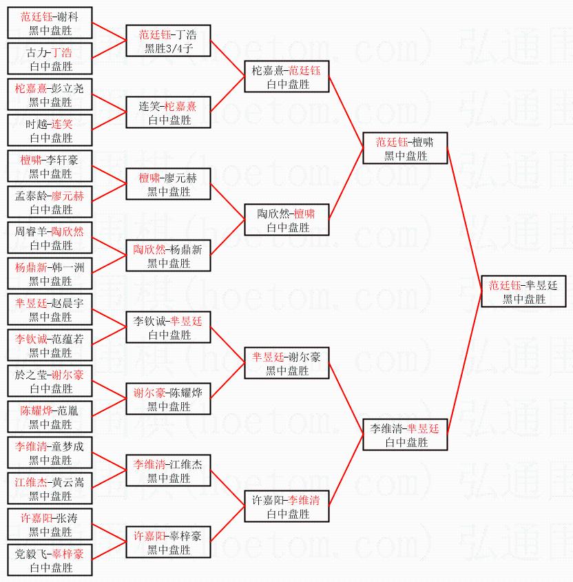 2.上半区半决赛范廷钰获胜, 比分:范廷钰 1:0 檀啸。棋局: