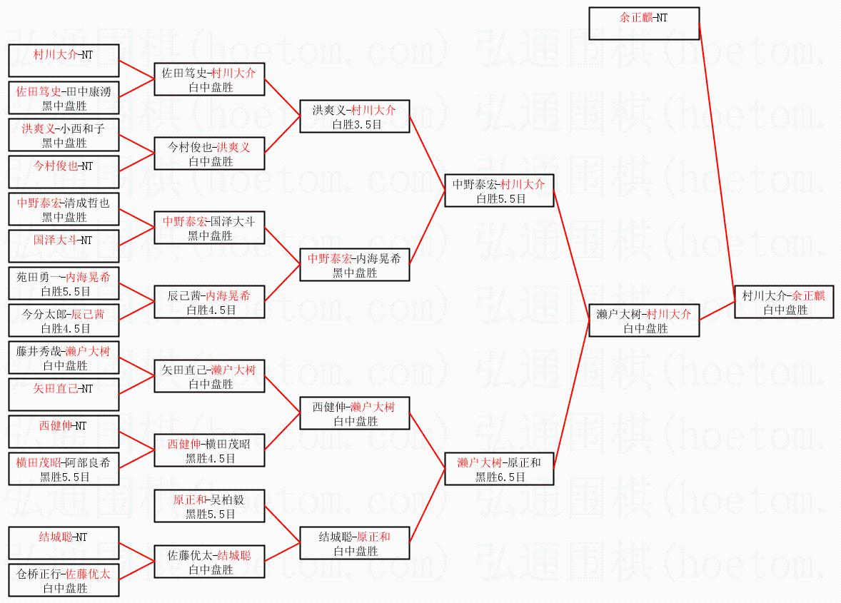 1.余正麒获得冠军,村川大介获得亚军。决赛比分:余正麒2:0村川大介。棋局: