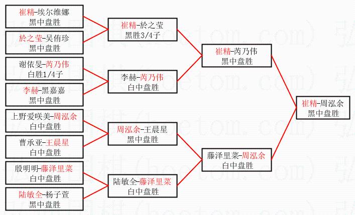 3.下半区半决赛周泓余获胜,比分:周泓余1:0藤泽里菜。棋局: