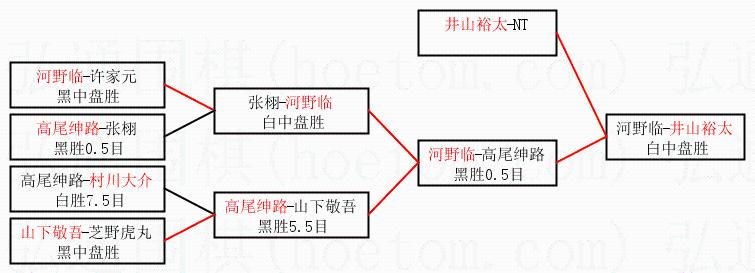 | 1.井山裕太获得冠军,河野临获得亚军。决赛比分:井山裕太4:1河野临。棋局: | ||