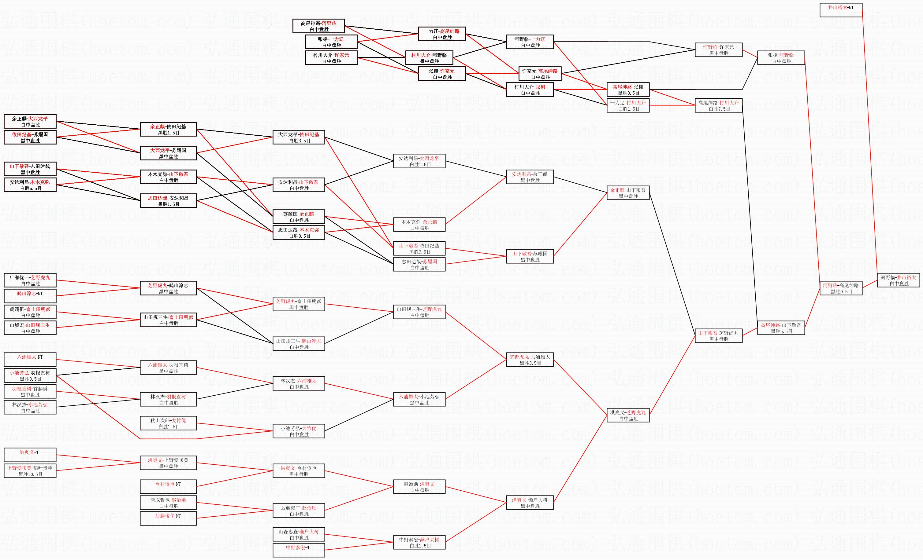 | 1.井山裕太获得冠军,河野临获得亚军。决赛比分:井山裕太4:1河野临。棋局: | ||