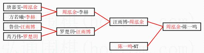 1.周泓余获得冠军,陈一鸣获得亚军。决赛比分:周泓余2:1陈一鸣。棋局:
