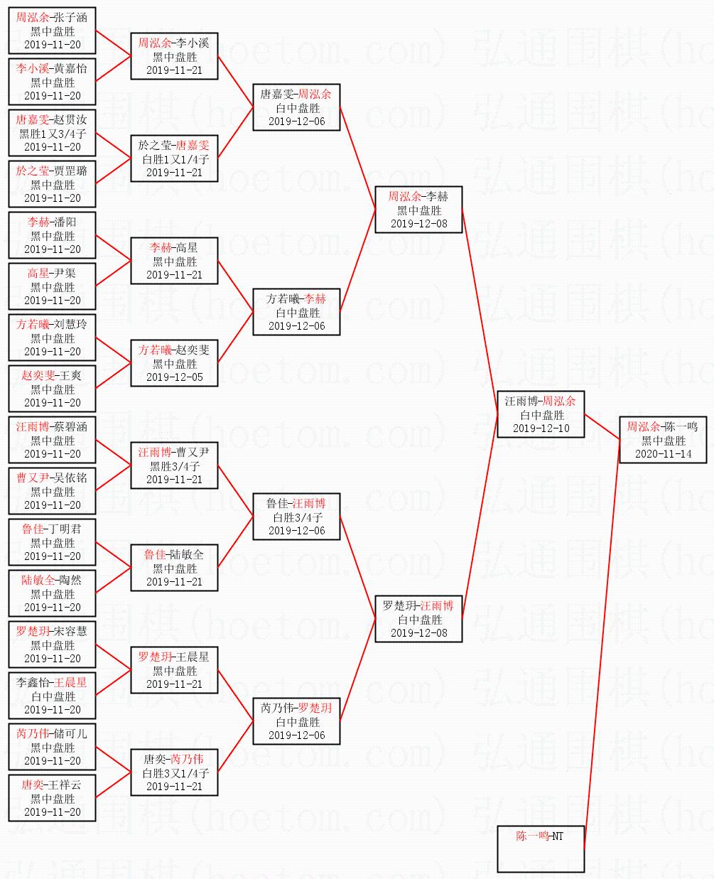 1.周泓余获得冠军,陈一鸣获得亚军。决赛比分:周泓余2:1陈一鸣。棋局: