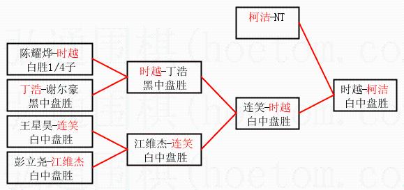 3.下半区半决赛时越获胜,比分:时越1:0连笑。棋局: