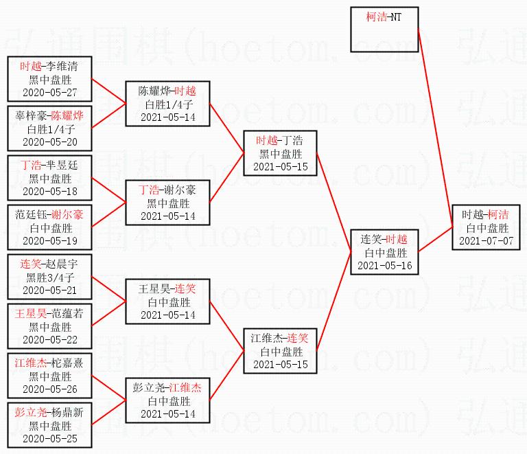 1.柯洁获得冠军,时越获得亚军。决赛比分:柯洁2:0时越。棋局: