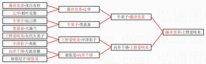 1.藤泽里菜获得冠军,上野爱咲美获得亚军。决赛比分:藤泽里菜1:0上野爱咲美。棋局: