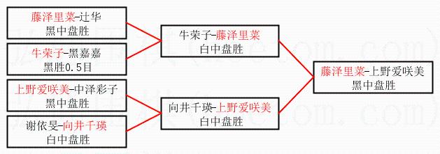 2.上半区半决赛藤泽里菜获胜, 比分:藤泽里菜 1:0 牛荣子。棋局:
