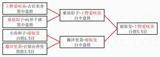 2.上半区半决赛上野爱咲美获胜, 比分:上野爱咲美 1:0 桑原阳子。棋局: