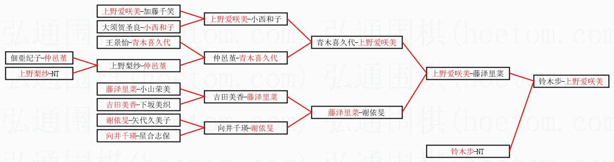 1.上野爱咲美获得冠军,铃木步获得亚军。决赛比分:上野爱咲美2:1铃木步。棋局:
