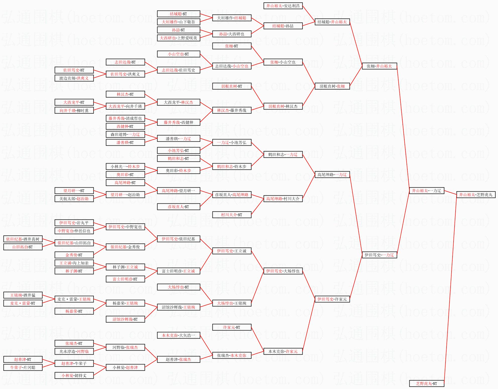 1.井山裕太获得冠军,芝野虎丸获得亚军。决赛比分:井山裕太3:2芝野虎丸。棋局: