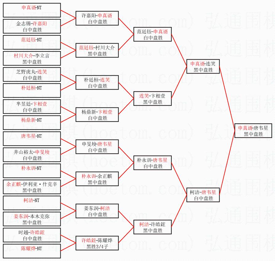 | 1.申真谞获得冠军,唐韦星获得亚军。决赛比分:申真谞2:0唐韦星。棋局: | ||