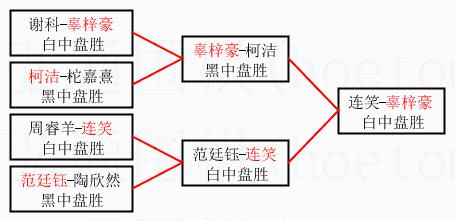 2.上半区半决赛辜梓豪获胜, 比分:辜梓豪 1:0 柯洁。棋局: