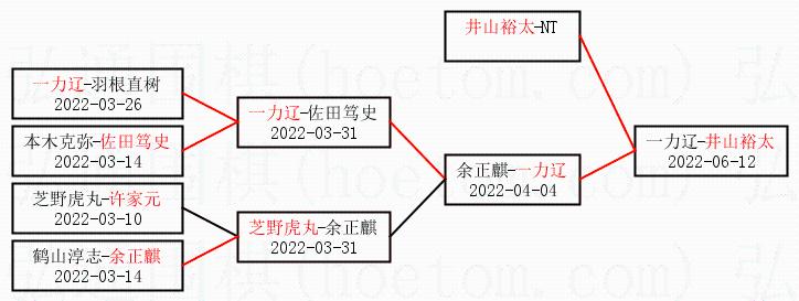| 1.井山裕太获得冠军,一力辽获得亚军。决赛比分:井山裕太4:0一力辽。棋局: | ||