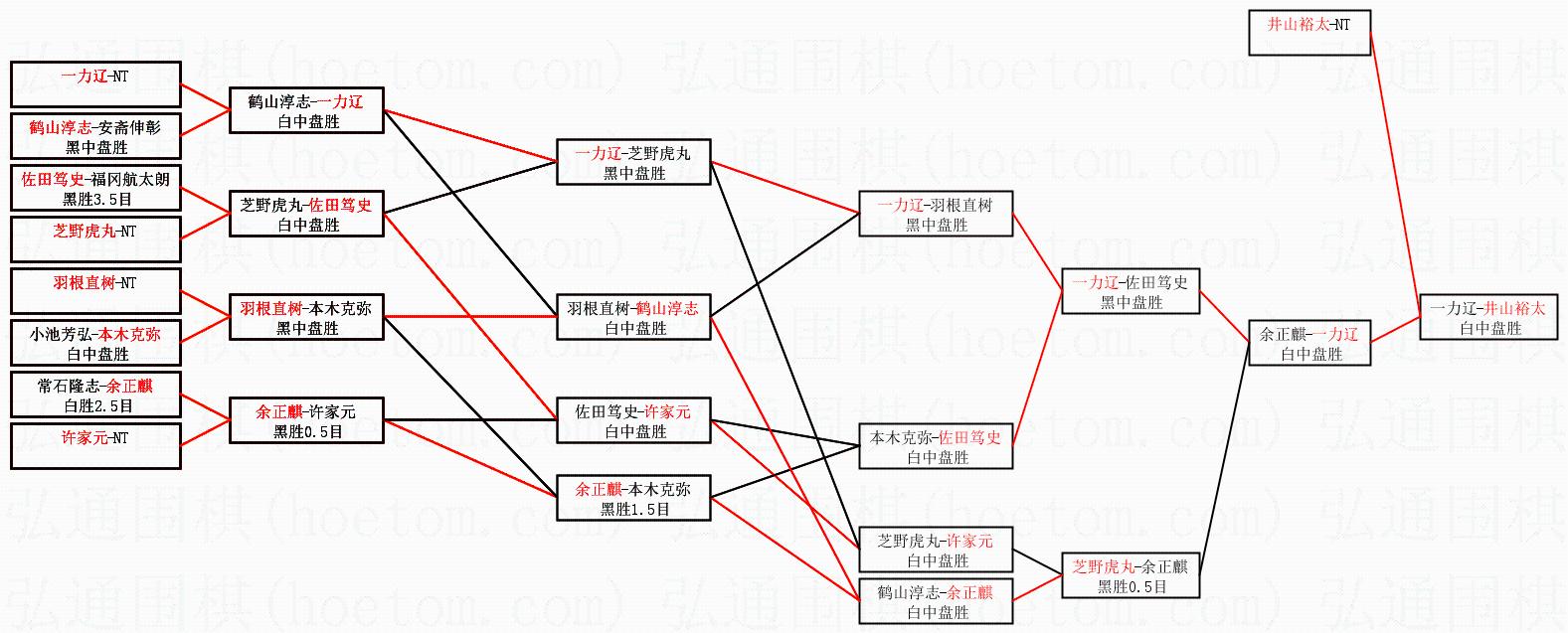 1.井山裕太获得冠军,一力辽获得亚军。决赛比分:井山裕太4:0一力辽。棋局: