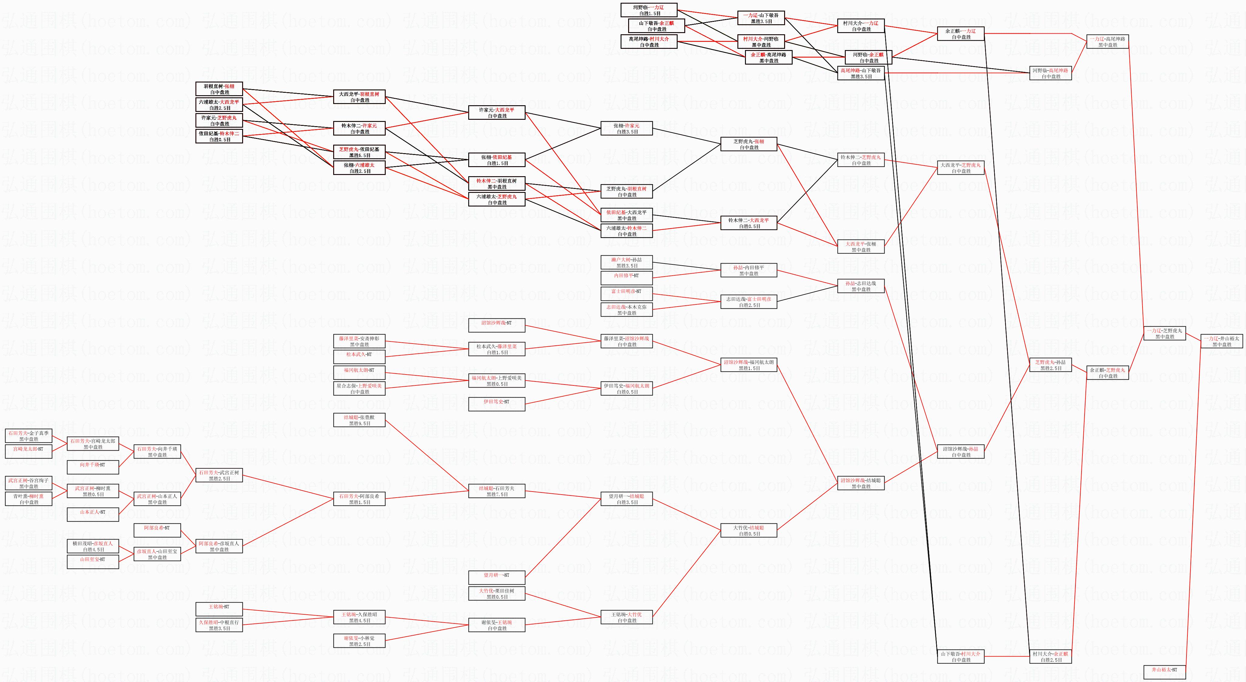 | 1.一力辽获得冠军,井山裕太获得亚军。决赛比分:一力辽4:3井山裕太。棋局: | ||