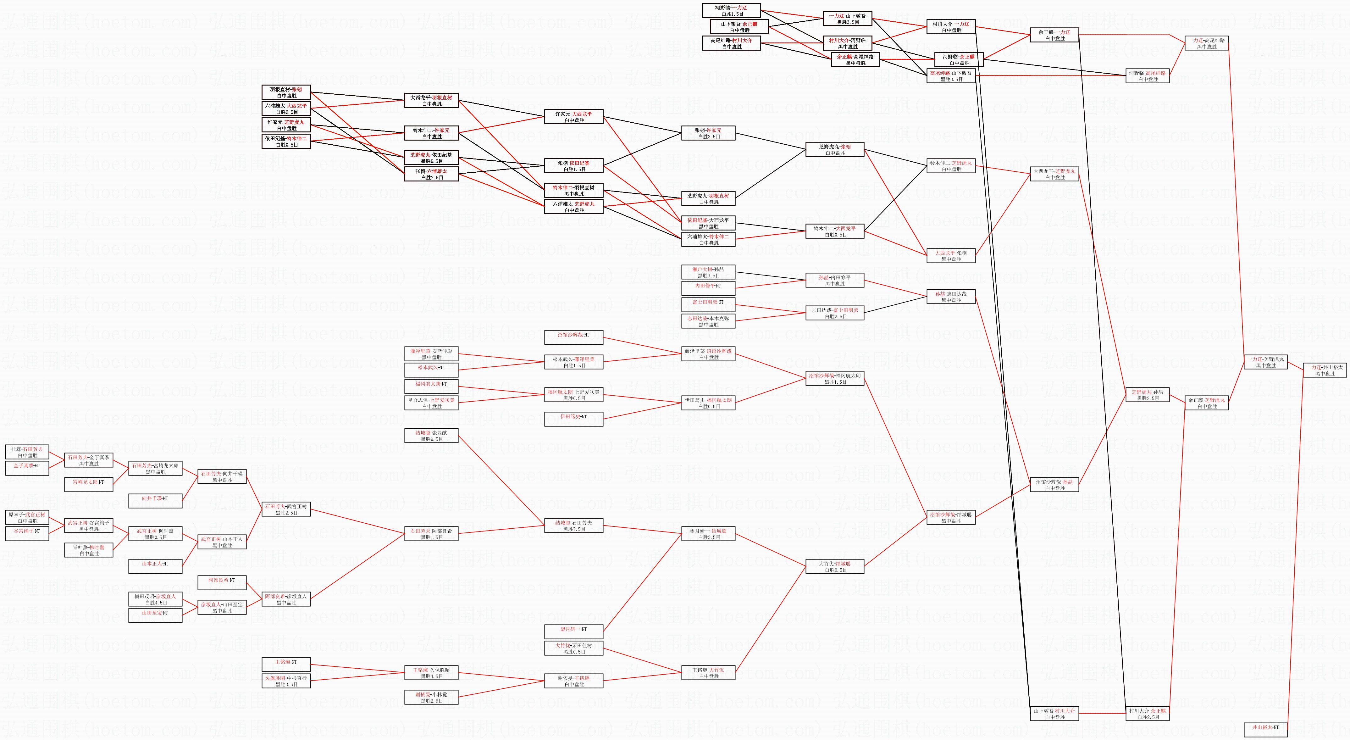 | 1.一力辽获得冠军,井山裕太获得亚军。决赛比分:一力辽4:3井山裕太。棋局: | ||