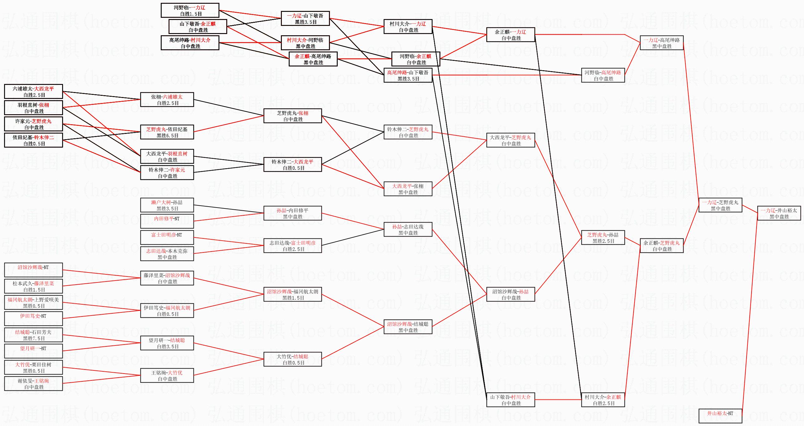 | 1.一力辽获得冠军,井山裕太获得亚军。决赛比分:一力辽4:3井山裕太。棋局: | ||