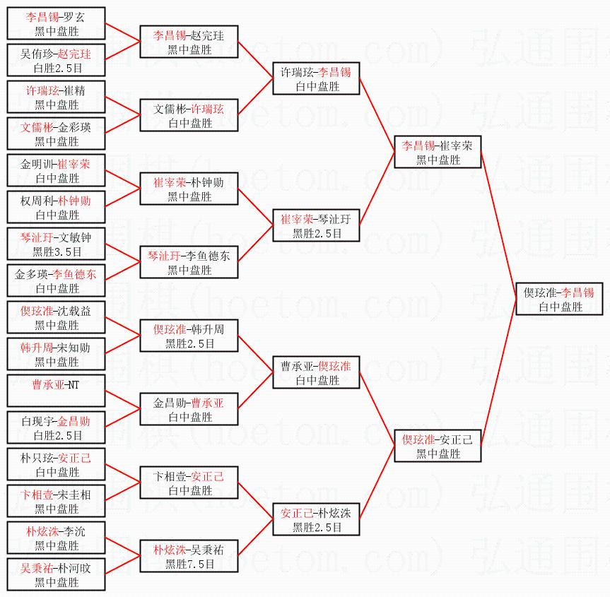 1.李昌锡获得冠军,偰玹准获得亚军。决赛比分:李昌锡2:0偰玹准。棋局: