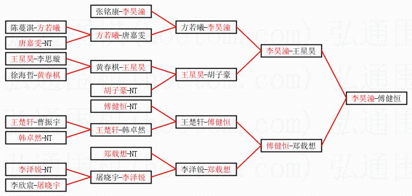1.李昊潼获得冠军,傅健恒获得亚军。决赛比分:李昊潼1:0傅健恒。棋局: