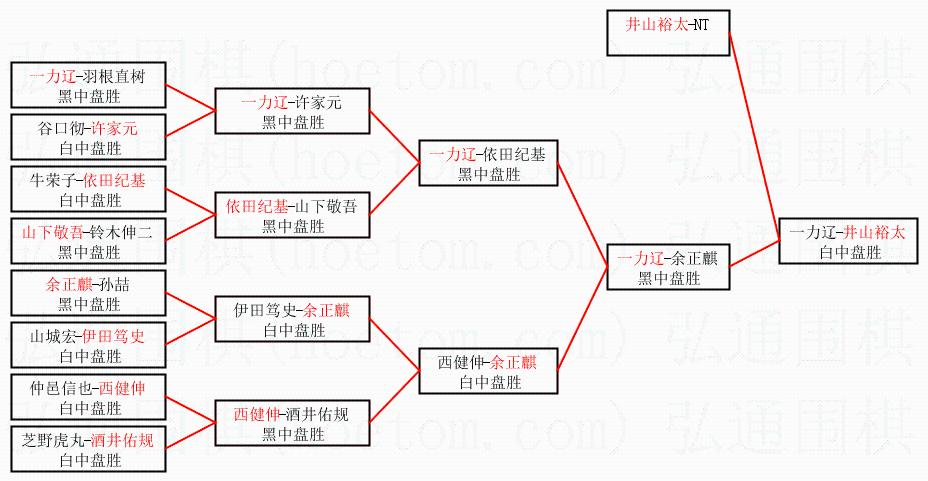 1.井山裕太获得冠军,一力辽获得亚军。决赛比分:井山裕太3:0一力辽。棋局: