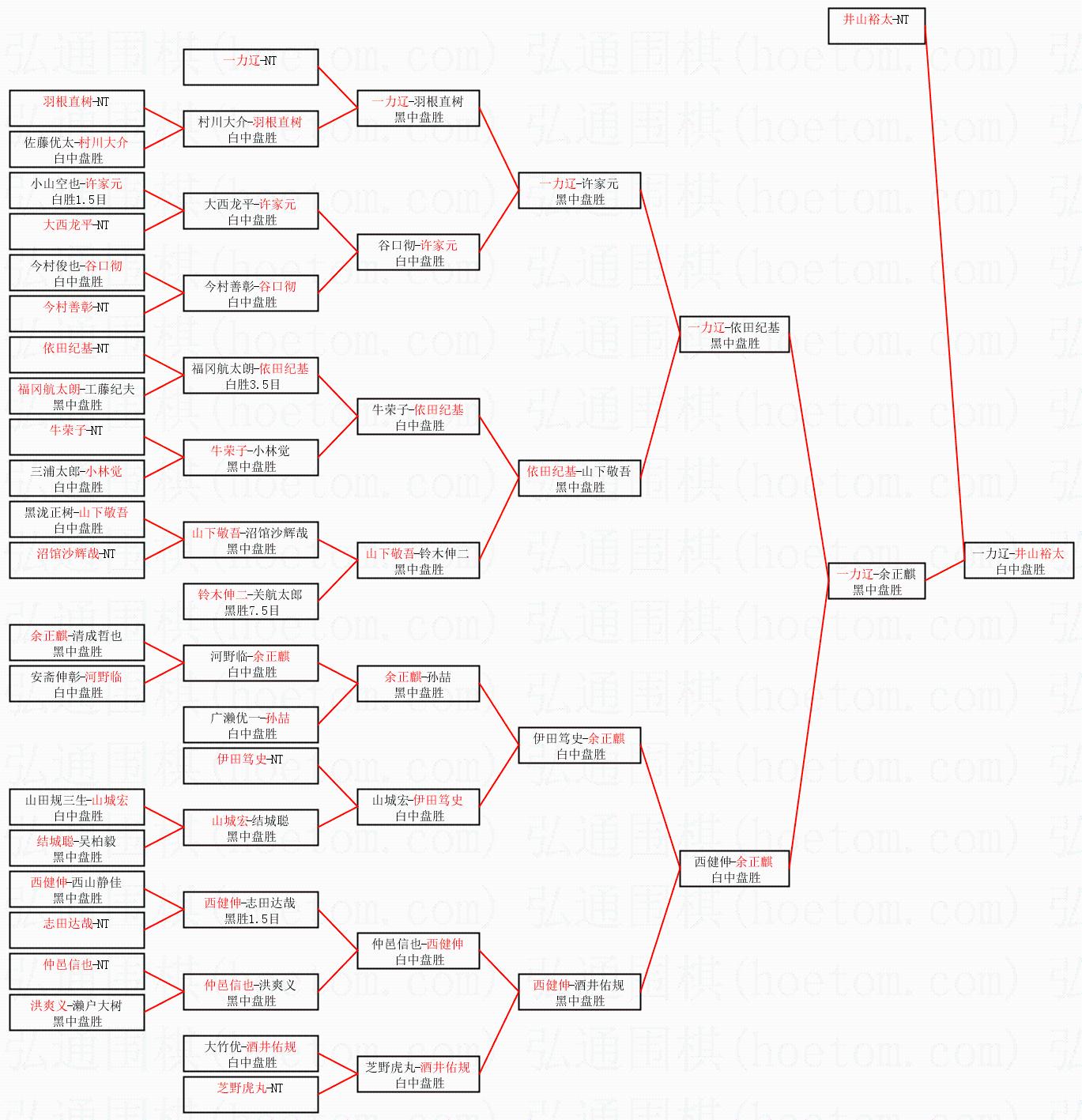 1.井山裕太获得冠军,一力辽获得亚军。决赛比分:井山裕太3:0一力辽。棋局: