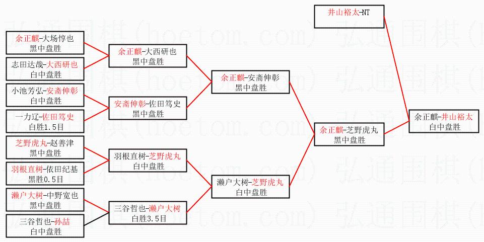 1.井山裕太获得冠军,余正麒获得亚军。决赛比分:井山裕太3:0余正麒。棋局: