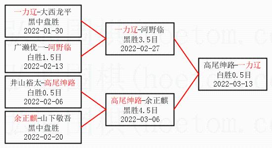 3.下半区半决赛高尾绅路获胜,比分:高尾绅路1:0余正麒。棋局: