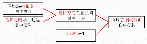 2.上半区半决赛羽根泰正获胜, 比分:羽根泰正 1:0 岩田达明。棋局: