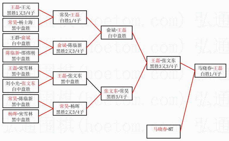 2.上半区半决赛王磊获胜, 比分:王磊 1:0 张文东。棋局: