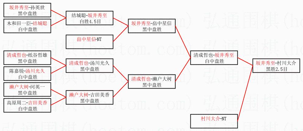 2.上半区半决赛坂井秀至获胜, 比分:坂井秀至 1:0 清成哲也。棋局:
