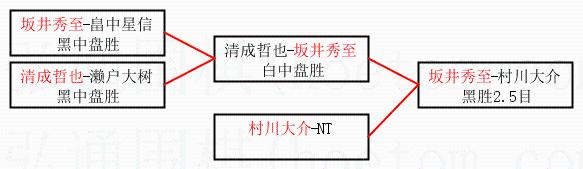 2.上半区半决赛坂井秀至获胜, 比分:坂井秀至 1:0 清成哲也。棋局: