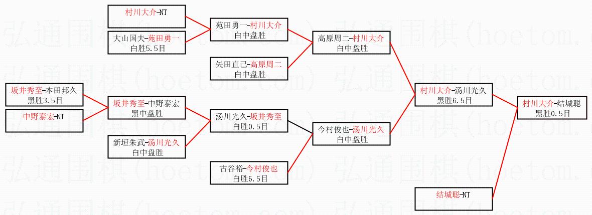 1.村川大介获得冠军,结城聪获得亚军。决赛比分:村川大介2:0结城聪。棋局: