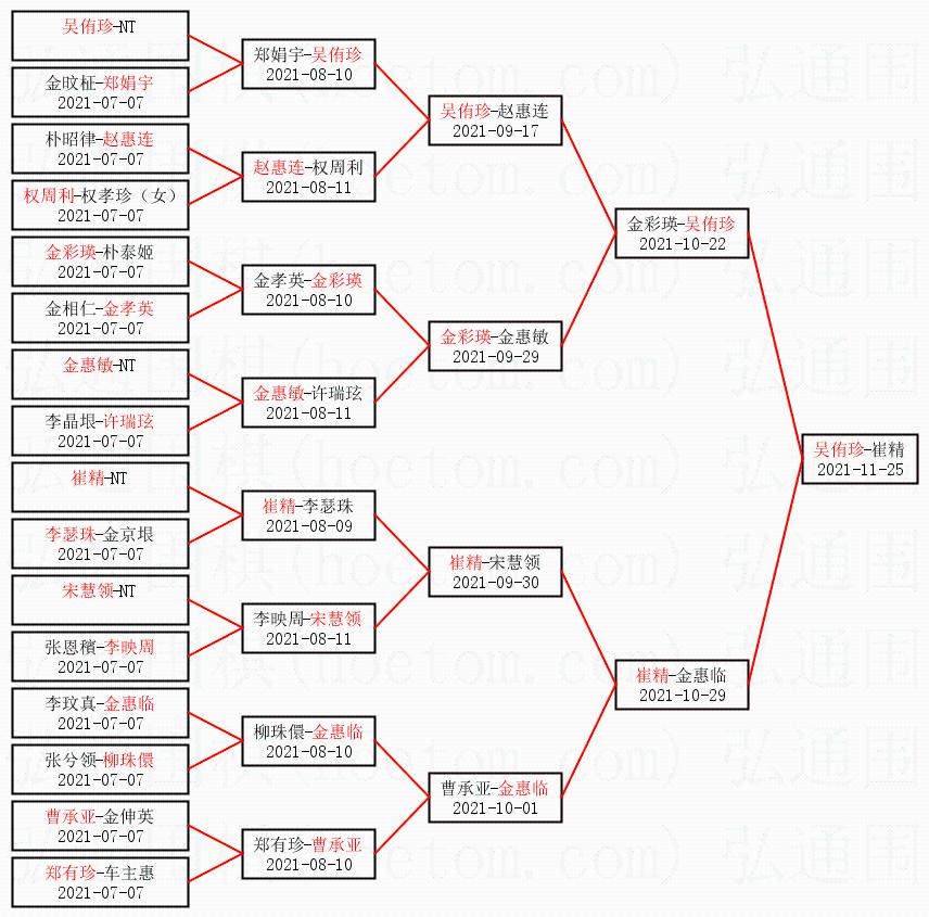 1.吴侑珍获得冠军,崔精获得亚军。决赛比分:吴侑珍2:1崔精。棋局:
